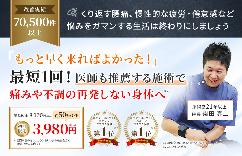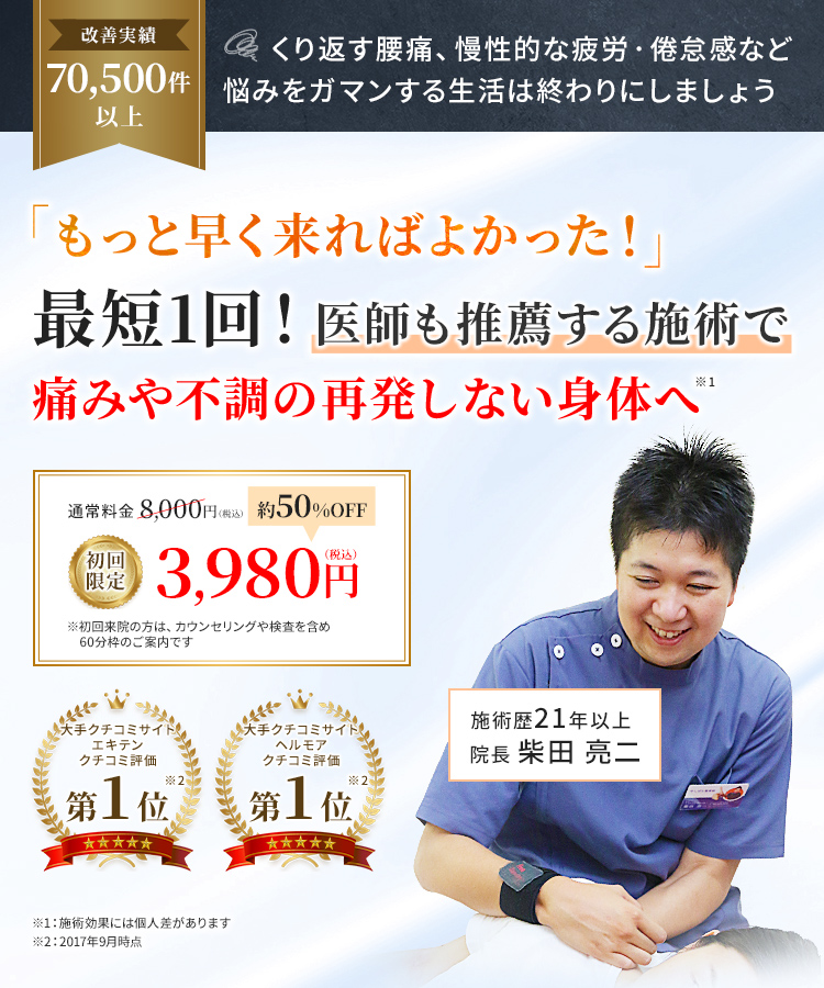初回で普通に歩けるようになり、2~3回で普段の生活を送れる程にまで回復しました
